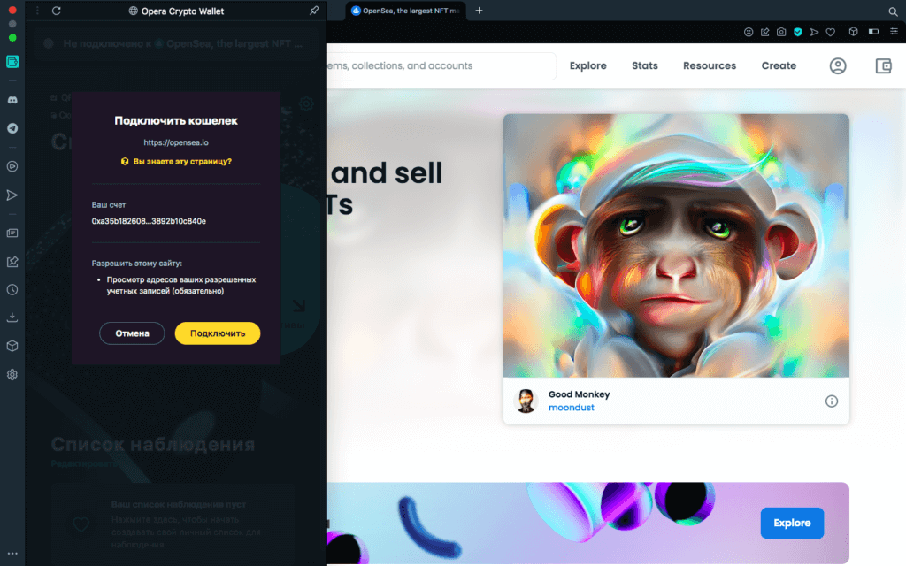 Криптобраузер Opera предлагает подключить кошелек к dApps