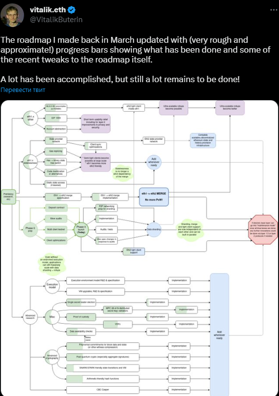 В начале декабря Бутерин опубликовал обновленную карту проекта, который учитывает успешный запуск нулевой фазы Ethereum 2.0.