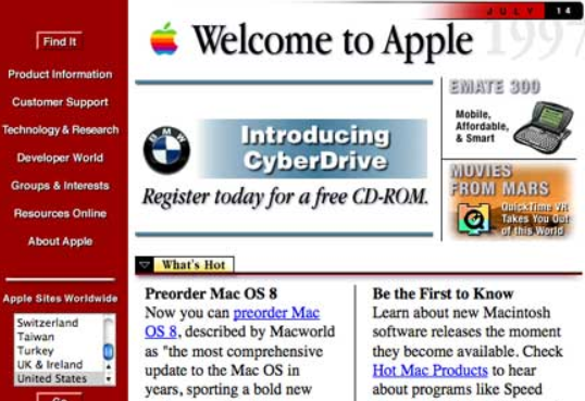 Главная страница компании Apple в Web 1.0. Источник.