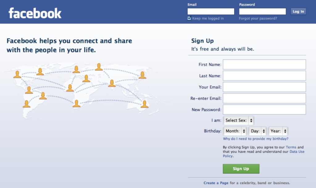 Страница регистрации Facebook. Источник