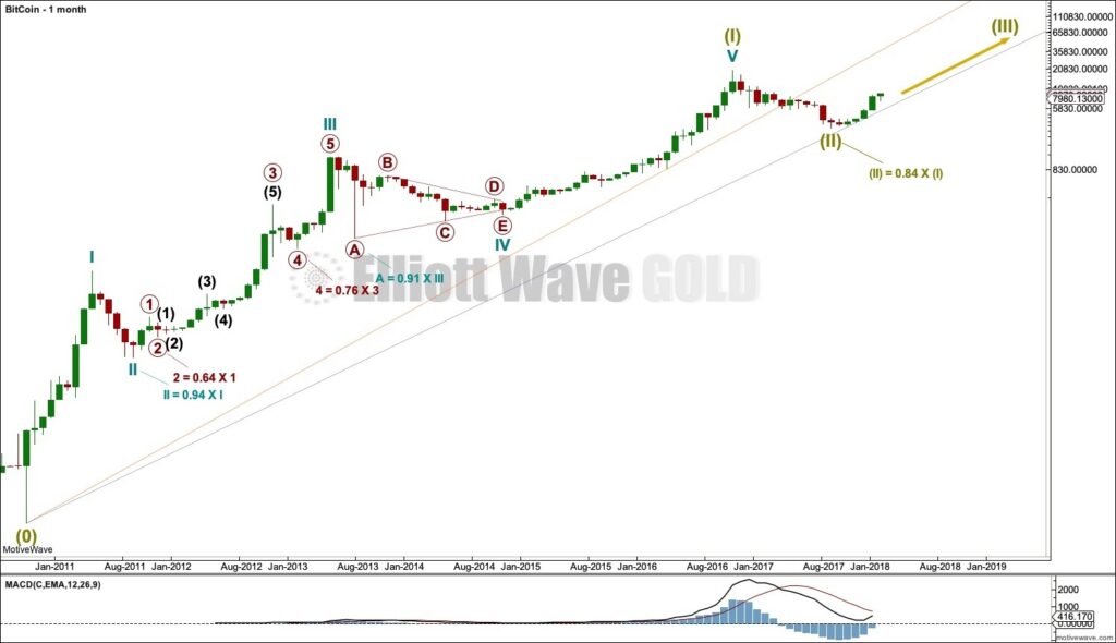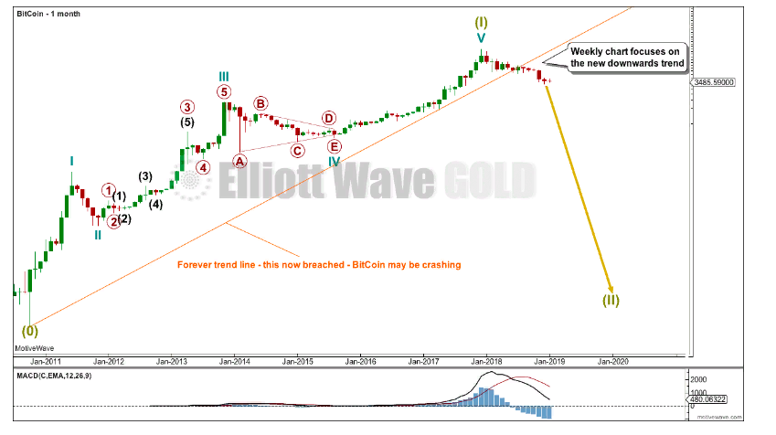 Рассмотрим две интерпретации графика биткоина согласно волнам Эллиотта. Обе сделаны примерно в одно время, но по-разному оценивают дальнейший ценовой тренд.