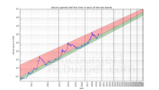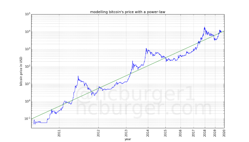 Предприниматель и биткоин-инвестор Гарольд Бюргер в августе 2019 года представил собственную долгосрочную экспоненциальную (степенную) модель оценки стоимости биткоина. В ее основе — движение курса биткоина в ценовом коридоре, определяемом степенными математическими законами. Если проще, то он строит график цены биткоина логарифмически, что позволяет сохранить пропорции роста актива, например, между $10 и $100, и $1 000 и $10 000. Таким образом модель позволяет лучше отслеживать движение тренда.