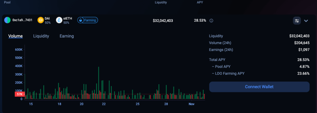 1INCH также предлагает собственный фарминг доходности, где представлены пулы с разной доходностью: