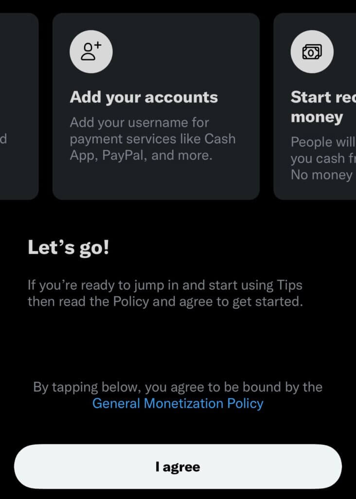 1. Ознакомьтесь с условиями «Политики чаевых» и нажмите «Я согласен» (I agree).