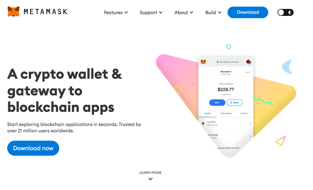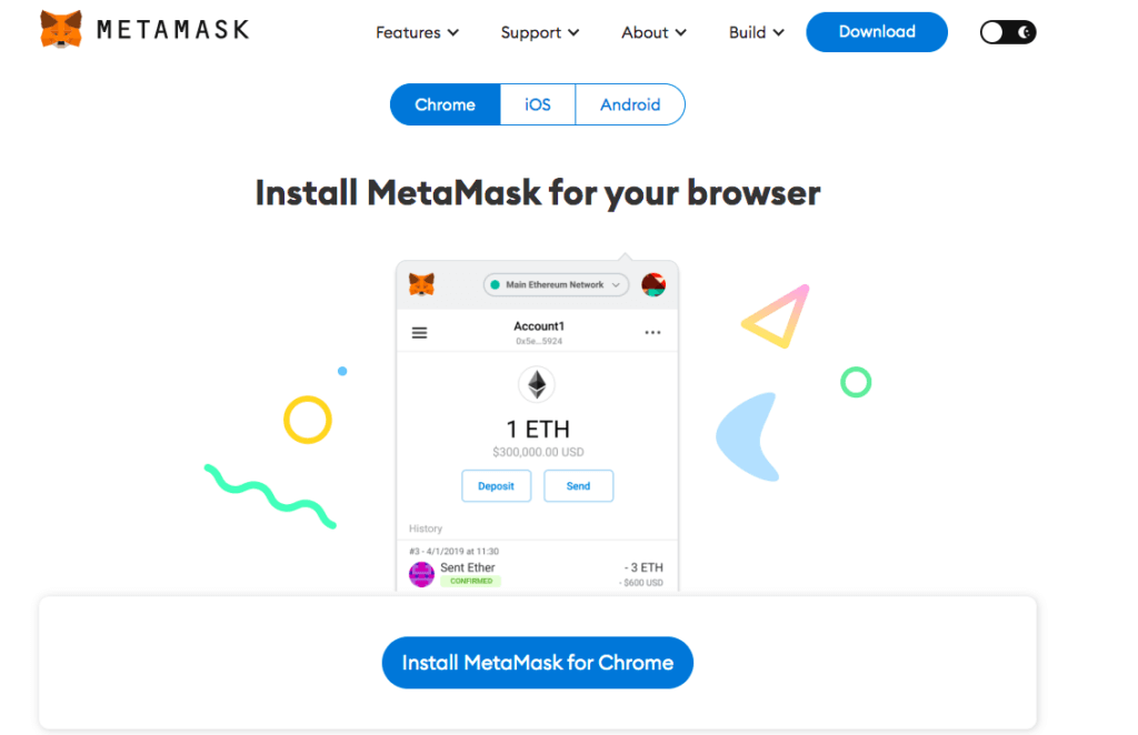 Самый популярный и один из самых удобных Ethereum-кошельков — это MetaMask. Для регистрации нужно загрузить мобильное приложение или установить расширение в браузер. В нашем случае удобнее второй вариант.