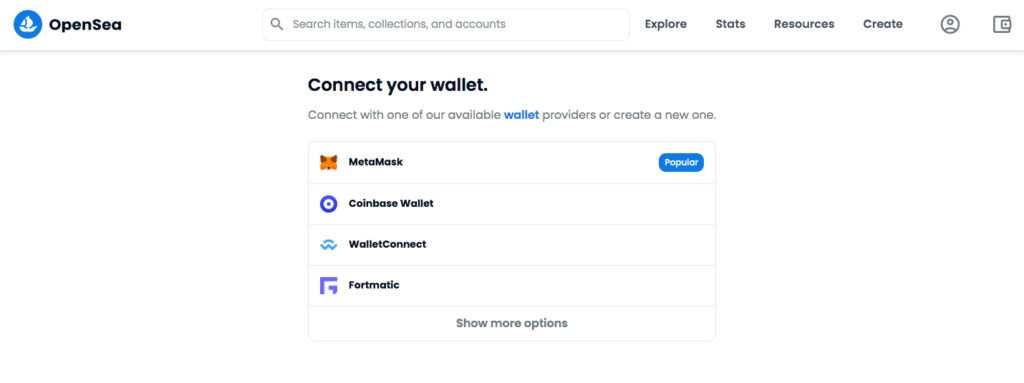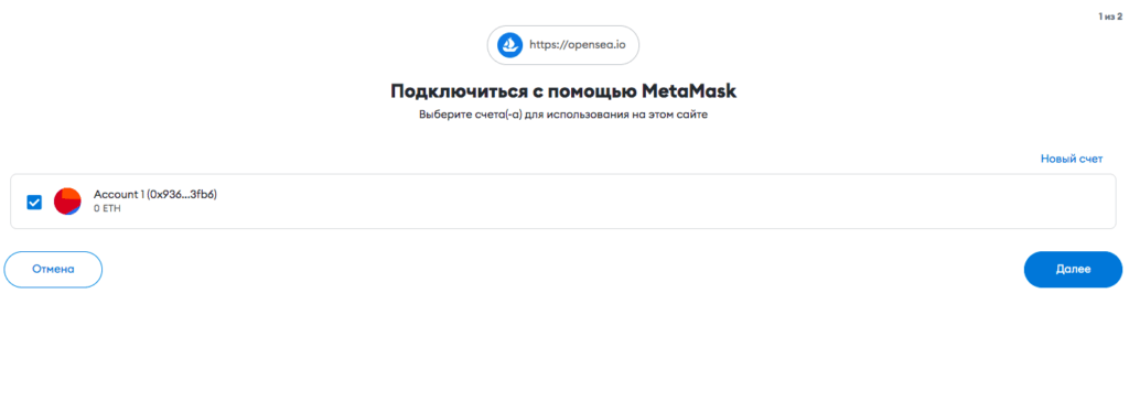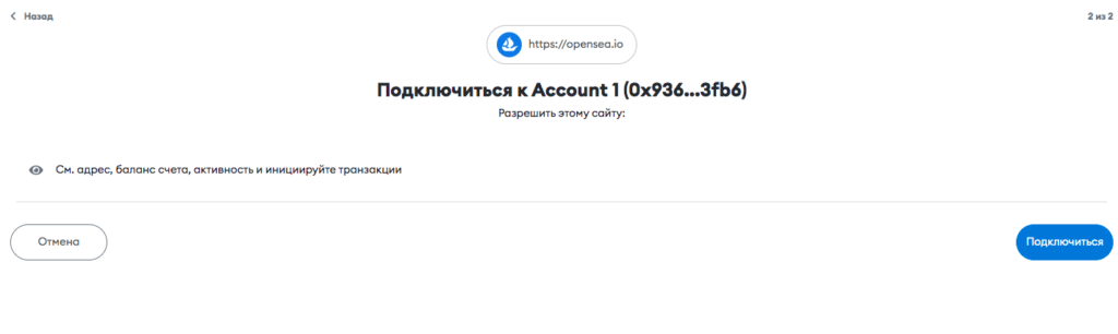 Чтобы подключить кошелек на OpenSea: