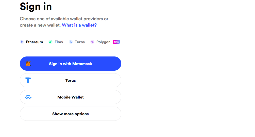 Для регистрации на маркетплейсе понадобится привязать к нему криптокошелек, поддерживающий доступные на платформе блокчейны. Кошелек — это доступ к вашему NFT и тем активам, которые вы за него получите. Он понадобится для оплаты комиссий за выпуск NFT, а также для оплаты сделок купли-продажи. Если кошелька нет, его надо создать.