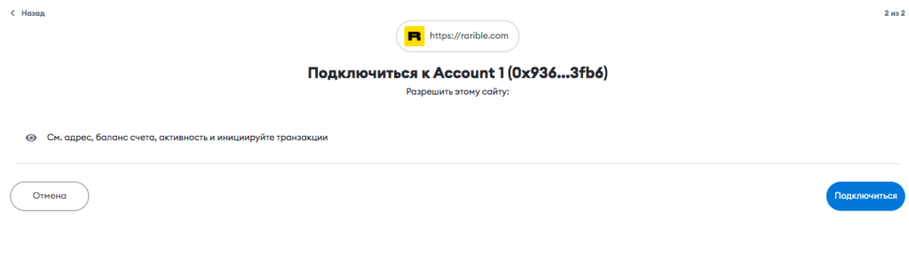 Чтобы подключить кошелек на Rarible: