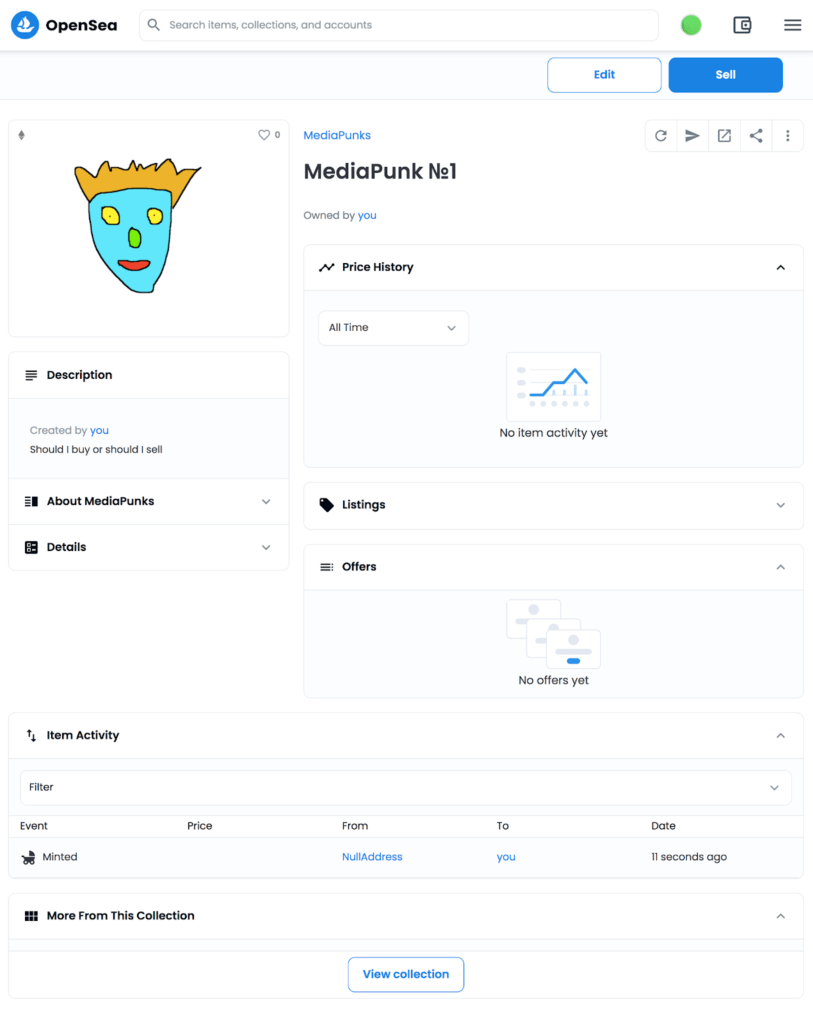 Когда кто-то решит купить ваш NFT, он предложит свою цену и вам придет уведомление об этом. Вы можете согласиться на проведение сделки или отказаться.
