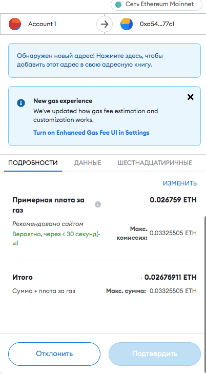 Последний шаг перед размещением NFT в блокчейне — оплата листингового сбора.