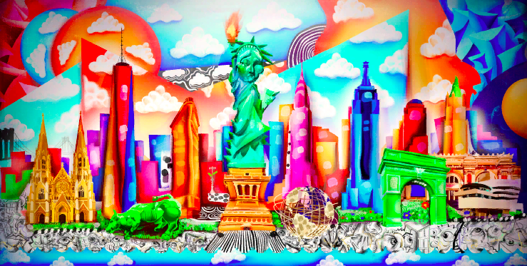 Изображение картины «Нью-Йоркский горизонт», которая была продана на платформе цифрового искусства Nifty Gateway. Работа была заказана соучредителями Morgan Creek Digital Энтони Помплиано и Джейсоном Уильямсом, а часть вырученных средств будет передана в Продовольственный банк Нью-Йорка (Food Bank For New York City)  —  независимую некоммерческую организацию, предоставляющую жителям бесплатное питание. Автор картины — 17-летняя художница Февос из Лас-Вегаса. Источник