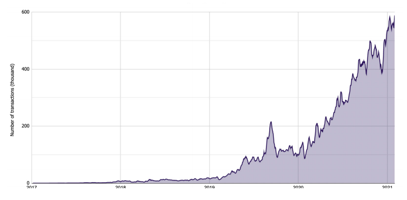 - Количество транзакций, производимых в течение дня, выросло с 100 000 до 600 000.