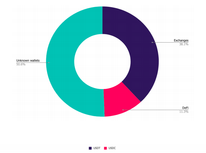 Кто же использует стейблкоины на рынке? Аналитики из The Block Research отмечают, что чаще всего стейблкоины используются в торговле и денежных переводах. Так, простые пользователи чаще используют стейблкоины для переводов: это удобнее и дешевле, чем переводить в фиатных валютах или криптовалютах вроде ВТС и ЕТН.