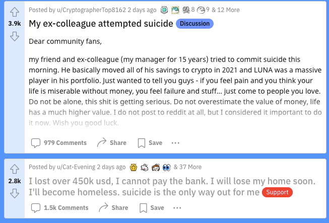 До Квон заверил сообщество, что ситуация под контролем и краха стейблкоина не будет. Однако 9 мая инвесторы усомнились в способности UST поддерживать привязку, начался лавинообразный вывод средств из Anchor и массовая продажа UST на биржах. В таких условиях цена стейблкоина уже не смогла вернуться к привязке и начала стремительно падать.