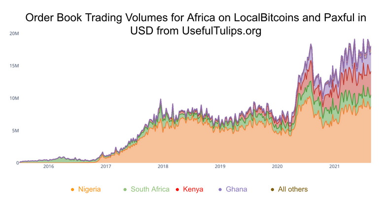 «Объемы торгов на LocalBitcoins и Paxful по странам Африки». Источник.