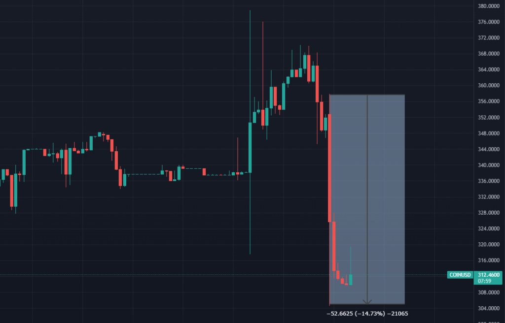 Цена акций Coinbase. Источник.