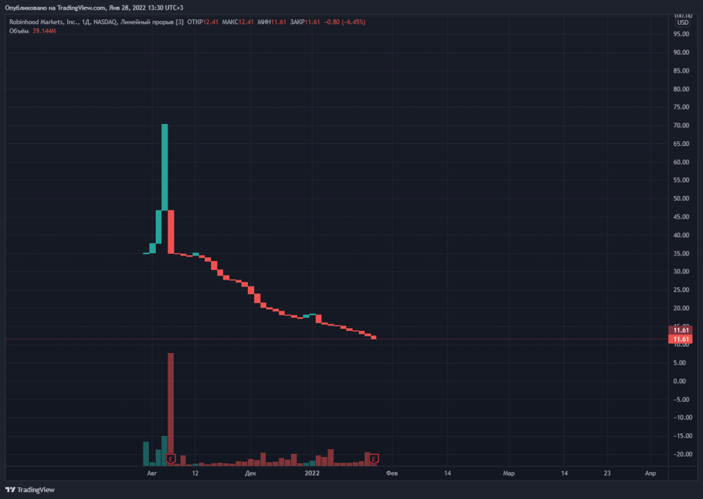 • Стоимость акций американского брокера Robinhood упала на 15% — до отметки $11.41.