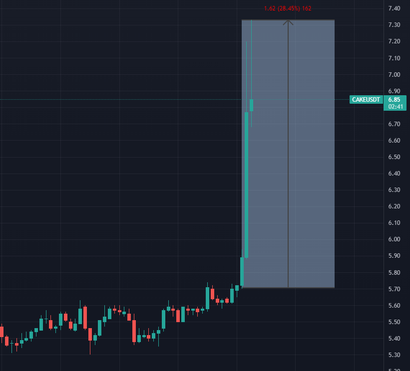 Токен децентрализованной биржи PancakeSwap CAKE отреагировал на новость двукратным ростом, после чего немного откатился: