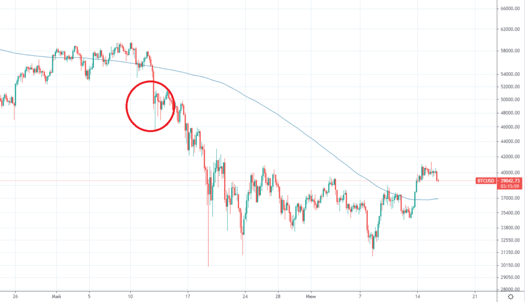 Вроде бы с кризисом удалось справиться, и ФРС начала давать намеки на ужесточение денежно-кредитной политики. На предыдущем заседании ставку решили оставить на околонулевых значениях, однако регулятор дал понять, что он наблюдает повышение экономической активности и готов поднимать ставку. Биткоин отреагировал падением: