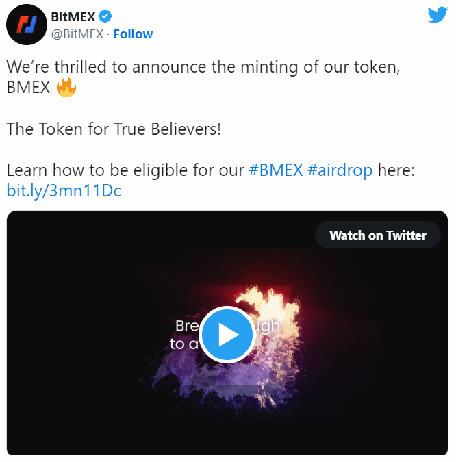 Криптодеривативная биржа BitMEX сообщила о выпуске собственного токена под тикером BMEX к началу февраля 2022 года.