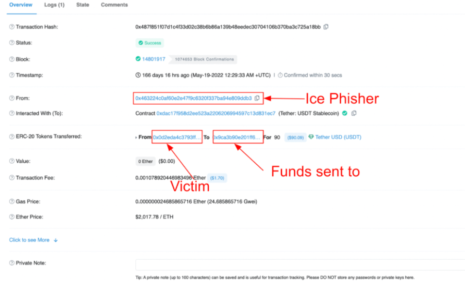 Если в случае с традиционным фишингом мошенники пытаются получить доступ к конфиденциальной информации, такой как приватные ключи или пароли, то в случае с ледяным фишингом они обманом заставляют подписывать разрешения на расходование токенов и криптовалют. В результате такого мошенничества 17 декабря были украдены 14 Bored Apes. В данном случае владельца NFT заставили подписать транзакцию, которая замаскирована под контракт на фильм. В итоге мошенник продал NFT-обезьян по дешевым ценам.
