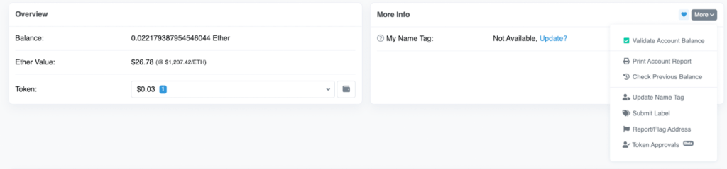 Чтобы не попасться на уловку мошенников, не следует подписывать те транзакции, в которых вы не уверены на 100%. Адреса, с которыми пользователи взаимодействуют, нужно проверять в обозревателях блокчейнов, таких как Etherscan, на наличие подозрительной активности. Для проверки выданных разрешений прав доступа также можно использовать Etherscan. В блоке «More Info» выберите пункт «Token Approvals».