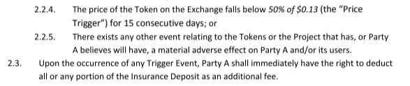 2.2.4. Цена токена на бирже падает на 50% ниже $0.13 в течение 15 дней подряд.
