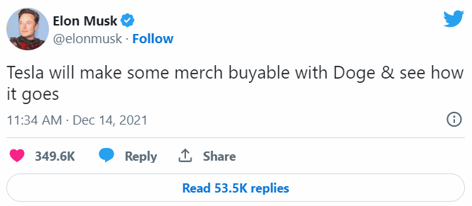 Илон Маск анонсировал выпуск предметов атрибутики от компании Tesla, которые можно будет приобрести за DOGE. Курс мем-токена показал мгновенный рост на 30% после выхода новости.