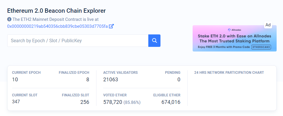 Однако, согласно данным Beaconscan, к Ethereum 2.0 допущено 674 016 ETH и 21 063 валидатора.