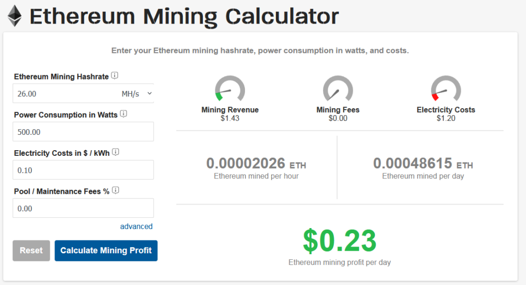 Расчет доходности майнинга Ethereum. Источник.