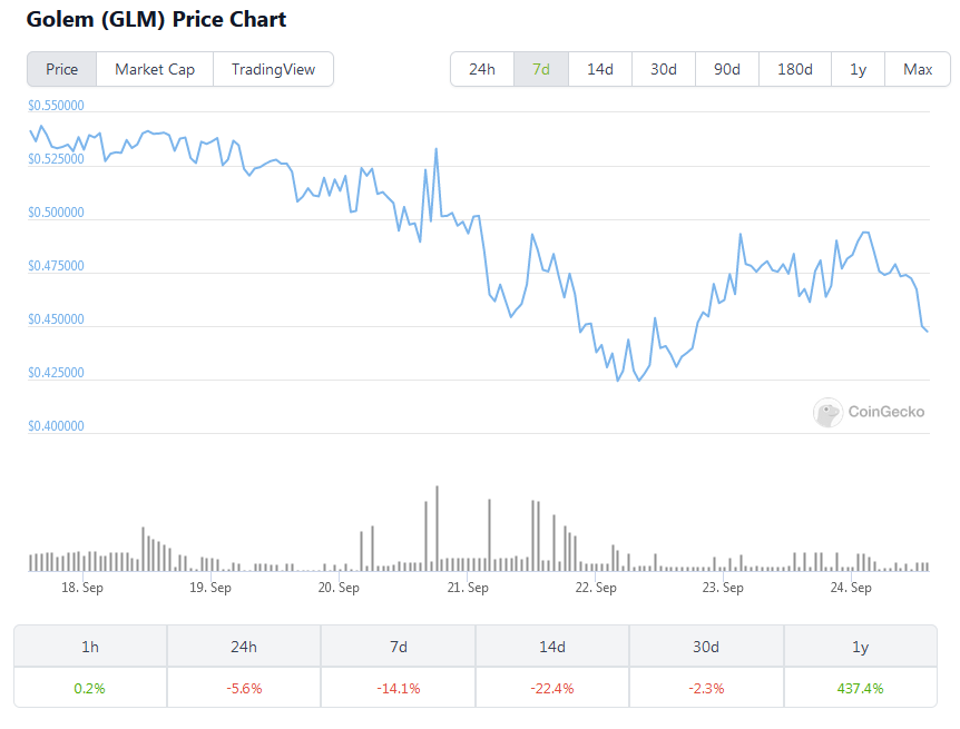 Стоимость токена GLM за последний год выросла более чем на 400%. Однако новости о запуске Thorg никакого роста цены не вызвали. И за последние сутки, по данным Coingecko, курс токена упал более чем на 5%.