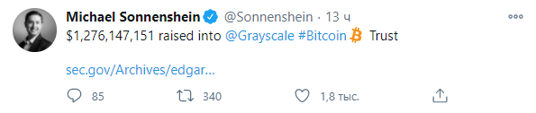 Сообщение генерального директора Grayscale Майкла Зонненшайна. Источник