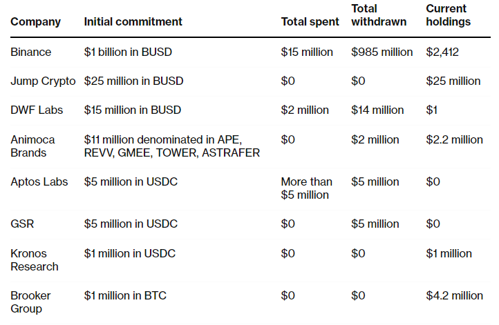 Однако, как выяснил Bloomberg после анализа публичных кошельков, связанных с инициативой, грандиозный план CZ провалился. В фонд восстановления индустрии было вложено менее $30 млн. Только один из девяти предполагаемых участников инвестировал все обещанные средства. А всего было заявлено об участии в фонде 18 организаций.