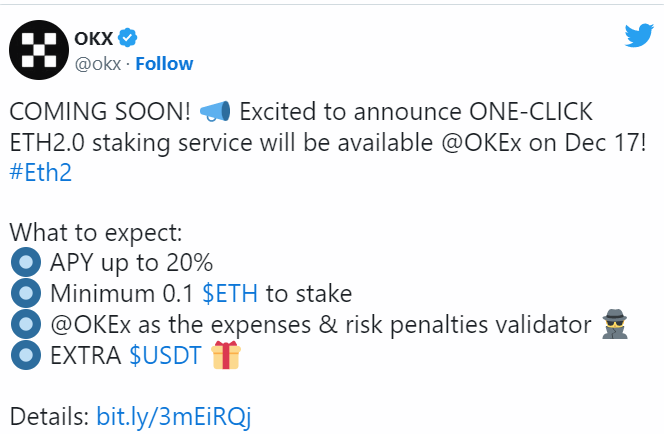 Пост OKEx в Twitter. Источник