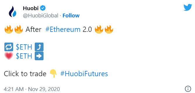 Пост Huobi в Twitter. Источник