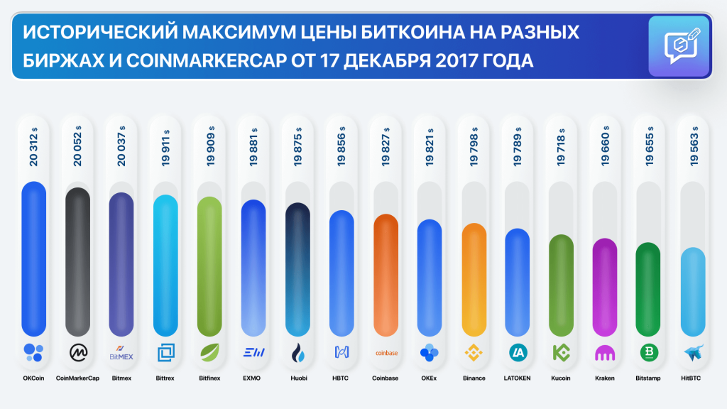 Мы решили провести собственное исследование и выяснить, какой ATH был зафиксирован на разных биржах. Результат: