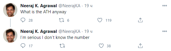 Сообщения Нираджа Агравала в Twitter: «Что такое ATH? Я серьезно не знаю числа». Источник