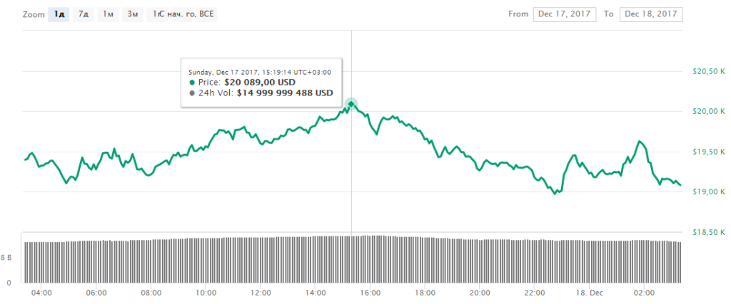 А на OKCoin цена вовсе достигала $20 312. При этом на многих биржах она не превысила $19 600.