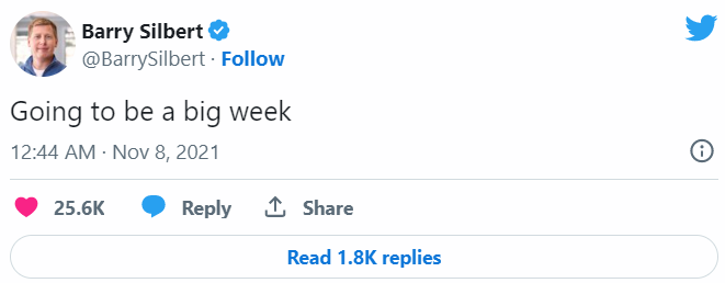 Тем временем основатель Digital Currency Group и Grayscale Барри Силберт опубликовал интересное сообщение в Twitter: