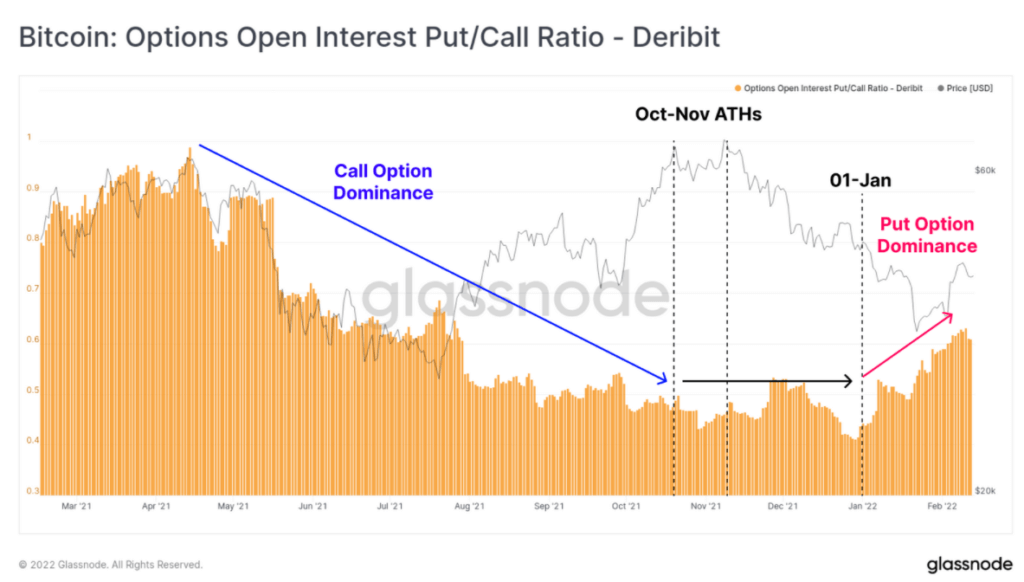 «Похоже, что инвесторы сокращают долю заемных средств и используют рынки деривативов для хеджирования рисков, покупая защиту от падения, которое может случиться из-за повышения ставки ФРС в марте», — утверждает Glassnode.