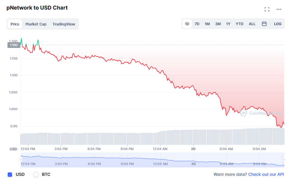 pNetwork — это платформа, которая упрощает перемещение цифровых активов по разным блокчейнам. Пользователи могут получать pBTC, депонируя BTC в смарт-контракт, что позволяет им переносить стоимость своих биткоинов из сети Bitcoin в другие сети. Платформа имеет собственный токен управления PNT, который из-за взлома упал более чем на 20% за последние сутки.