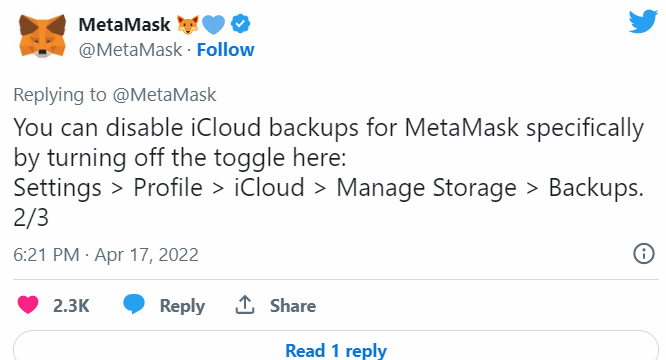 MetaMask предупреждает: криптовалюта может быть украдена из-за автоматического сохранения ключей в iCloud