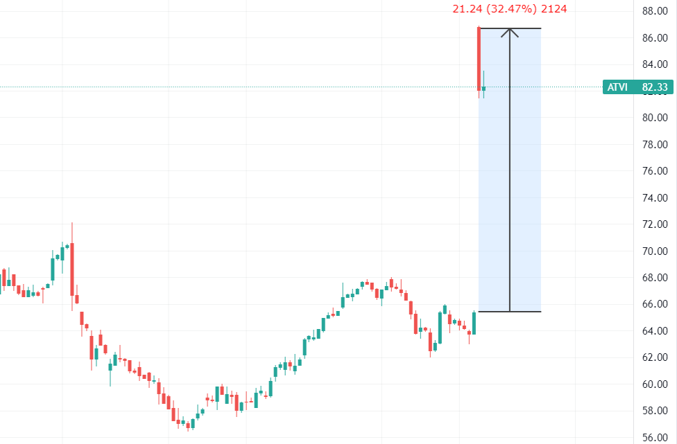 Новость крайне положительно сказалась на стоимости акций Activision Blizzard, которые в моменте повысились в цене на 32%.