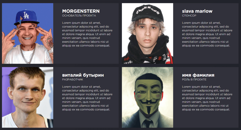 В интернете появилась реклама, в которой обещается продажа токенов якобы от имени известного рэпера Моргенштерна. Так, на одном из сайтов morgentoken.com  утверждается, что Моргенштерн, а также Слава Марлоу и «Виталий Бутырин» (очевидно, отсылка к известному разработчику и создателю Ethereum Виталику Бутерину) являются представителями токена Morgentoken.