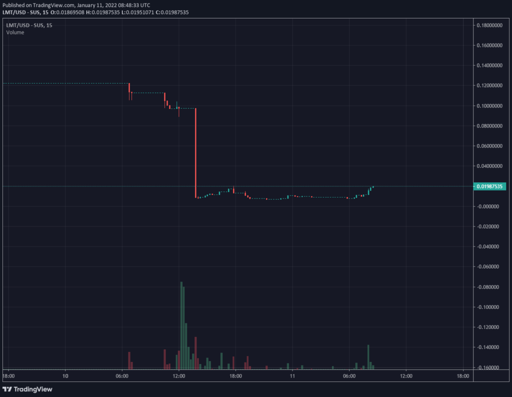 Цена собственного токена LMT упала до отметки $0.0093 (на 92%) сразу после того, как злоумышленники продали украденные активы.