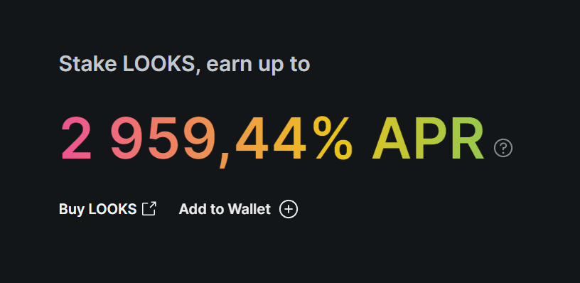 • Токены LOOKS можно стейкать с текущей доходностью более 3 000% годовых.
