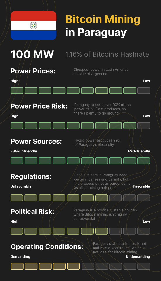 • Причиной привлекательности Парагвая для майнинга является дешевая гидроэлектроэнергия.