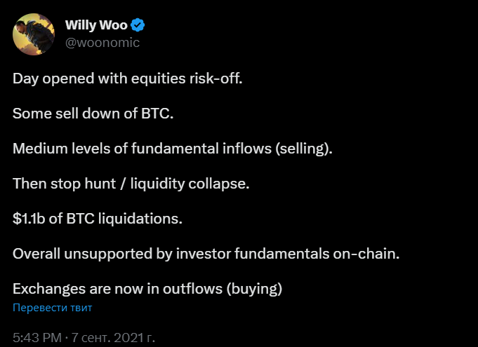 «День начался без особого риска. Кто-то продал BTC. Продажи находятся на среднем уровне. Начинается ликвидация маржинальных позиций. $1.1 млрд ликвидации позиций по биткоину. Рынок не поддерживает падение. На биржах начинаются покупки»Источник