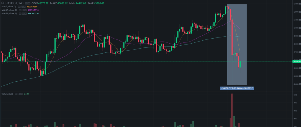 Последние сутки для многих криптотрейдеров были беспокойными, поскольку ведущие криптовалюты потеряли весомую часть своей стоимости. Биткоин за считанные часы потерял более $10 000, или около 20%: