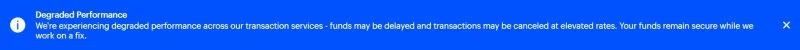 Буря не обошла стороной и криптобиржи. Крупнейшая площадка в США Coinbase разместила у себя на сайте предупреждение о снижении производительности.